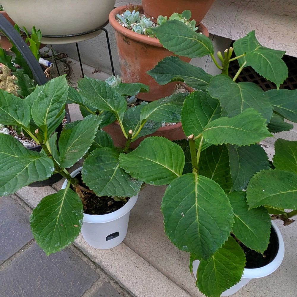 紫陽花、植え替えしようと土も鉢も用意して準備万端と思いきや花をカットしたのでどちらの鉢が赤色なのか青色なのか🤔⁉️