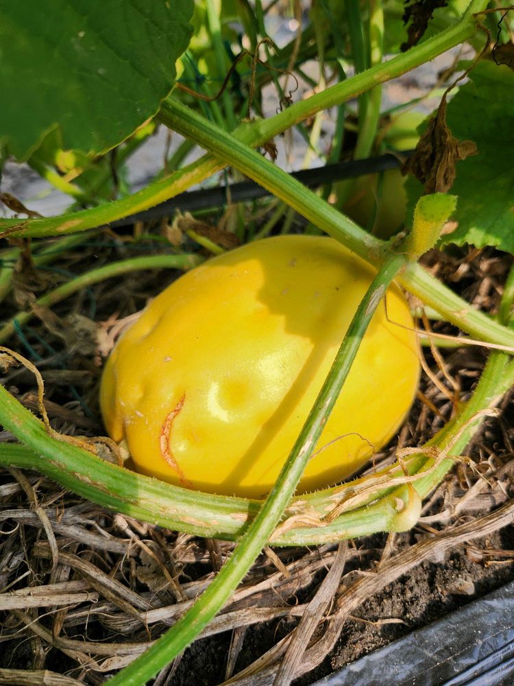 3️⃣枚目 マクワウリは黄色く色づき収穫間近です。