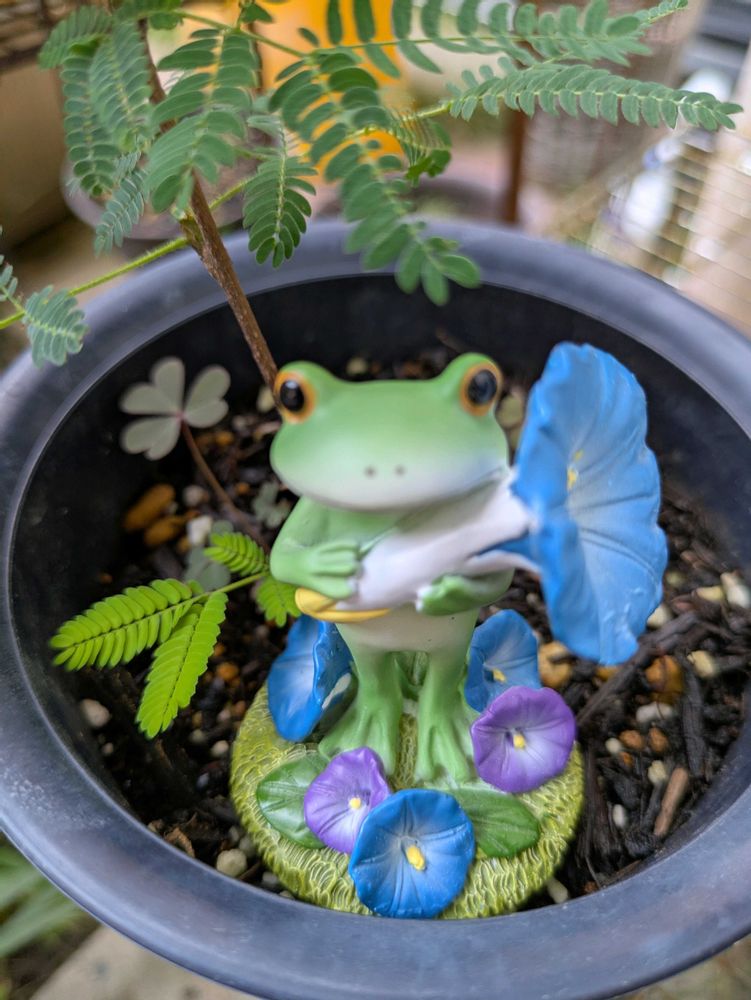 ヒネムの挿し芽はいくつか咲きました。今日は、6日だから、🐸を出したくてヒネムを撮りました。