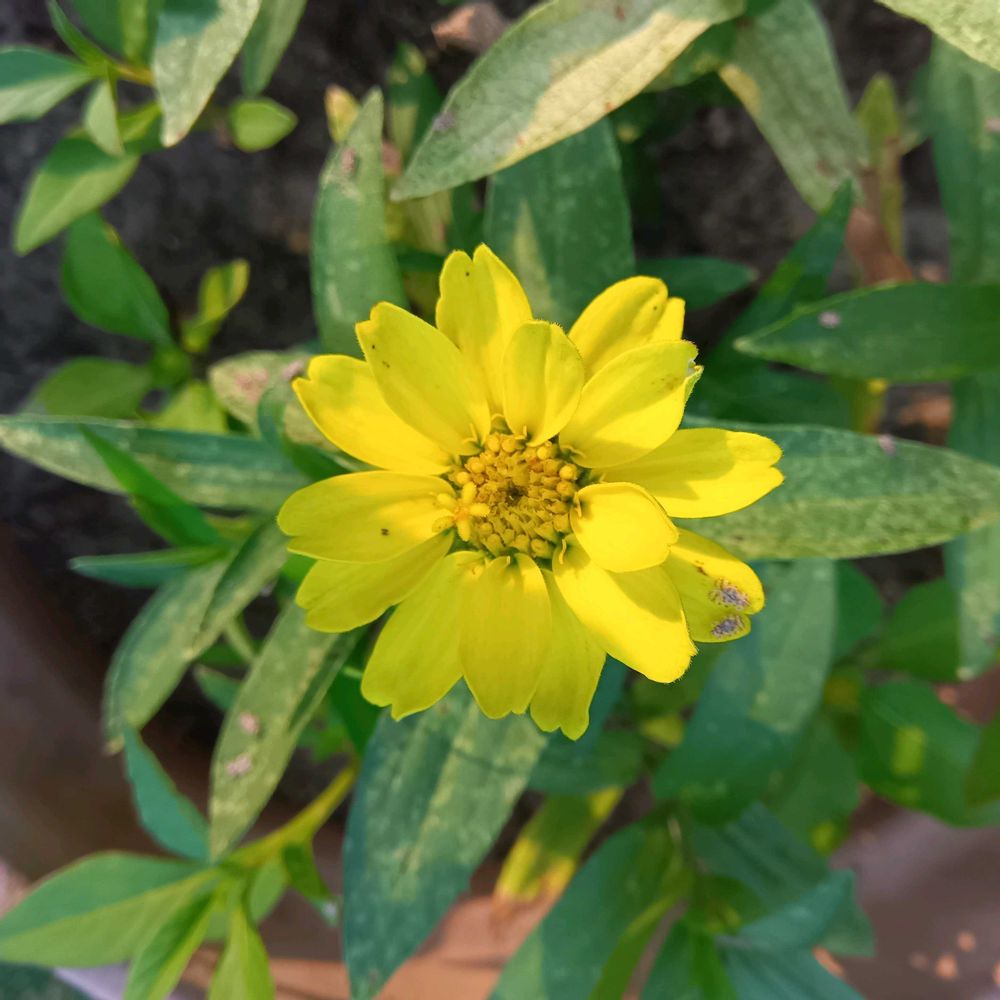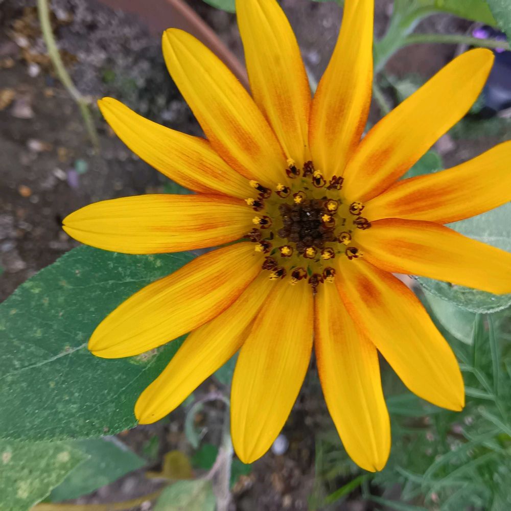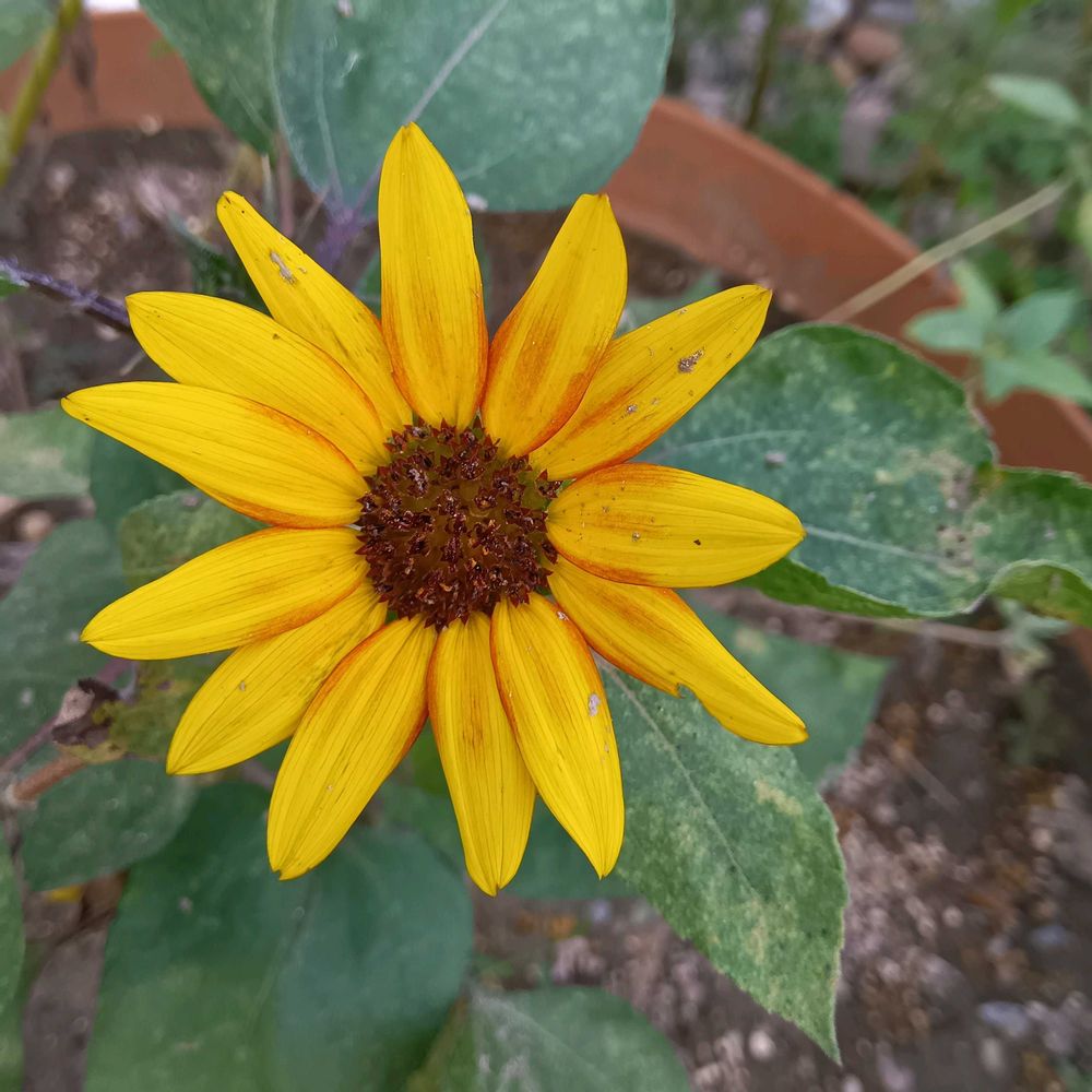 はにかむような顔をしたミニヒマワリが咲き始めました🌻