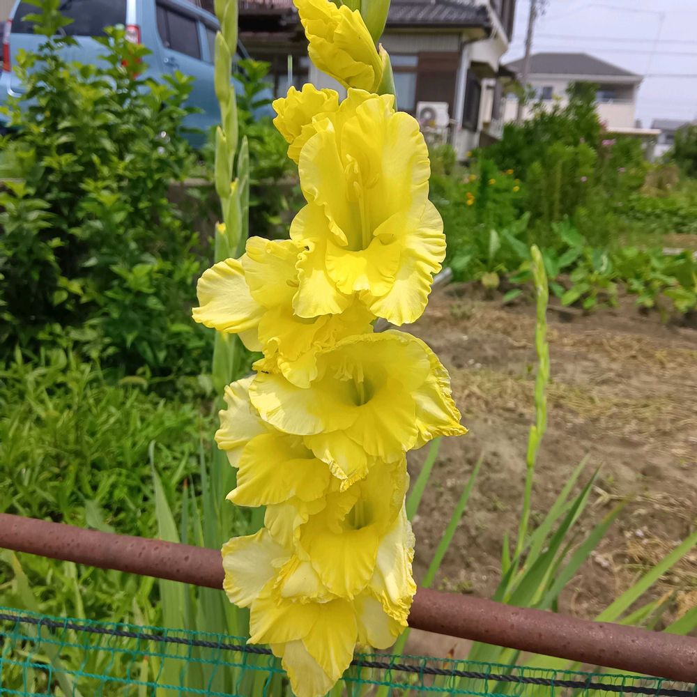 ⑤お隣の畑で咲き始めたグラジオラス💛
