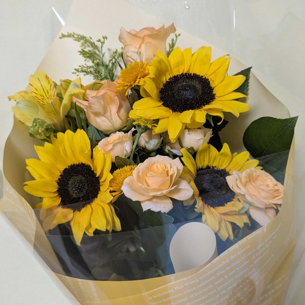 なんと❢パパが花束抱えて帰ってきた😲花なんて今まで何十年🙄いやもう一度も貰った事ないよ🙄サプライズとかできない人なのにどーした😅何かが起きる予感🙄💦