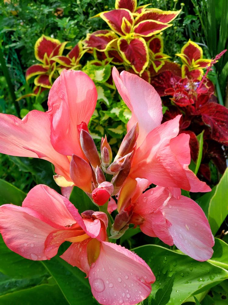 1️⃣カンナ トロピカルローズ咲き始めました😃 コリウスも元気です🎵