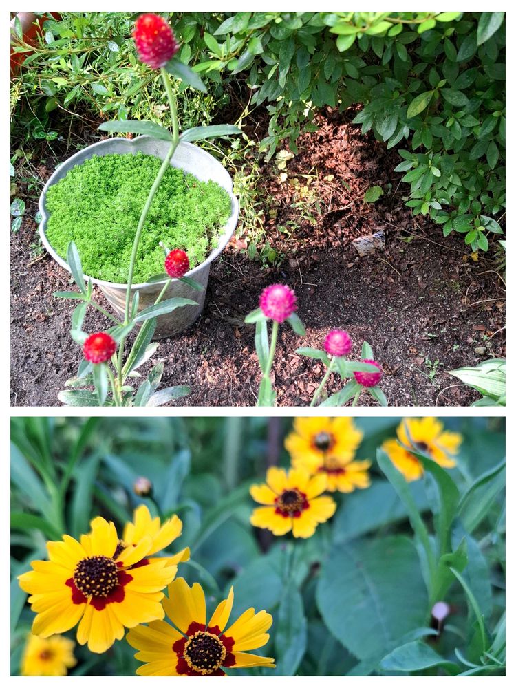 ひまわりさんの庭,センニチコウ,マンリョウの投稿画像