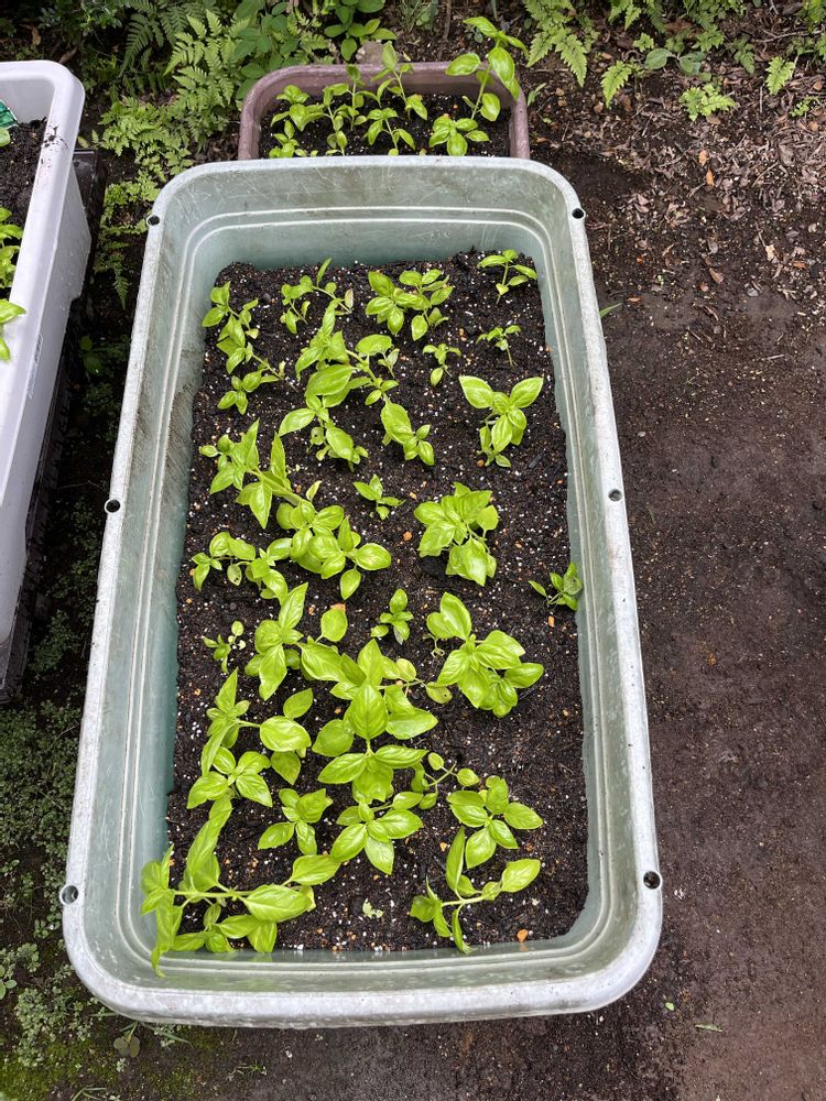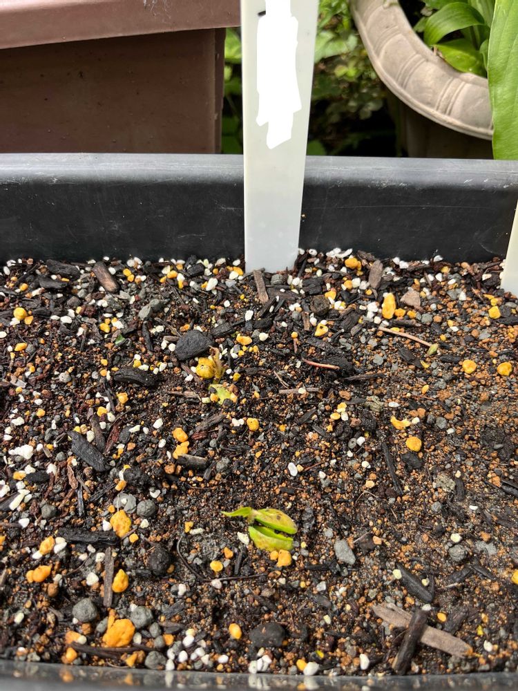 おはようございます。曇り、29.7℃、10:40ムシっと暑い。バターナッツかぼちゃ3世、3号、4号に人工受粉しました。小豆島の琵琶から種採り、孫と植えて22日目xxくんのが2つ発芽しました。ミツバ、278日目初収穫しました。余り種のバジル、70日目苗植え替えしました。😻😍🥰😋☺️☺️