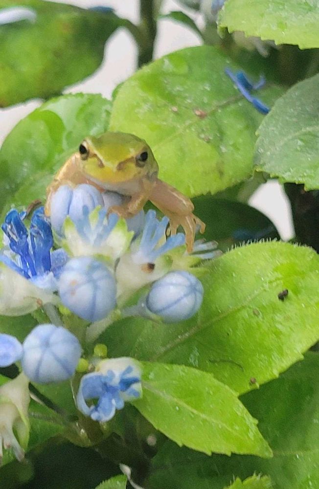 アジサイ͛💠には🐸が似合います 雨が降らなく暑いのが残念