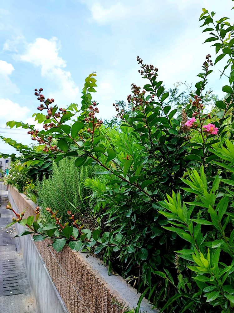本日の庭です。サルスベリが咲き始めました~。この子だけダントツで早いので、なんか早生の血筋なんでしょうね。