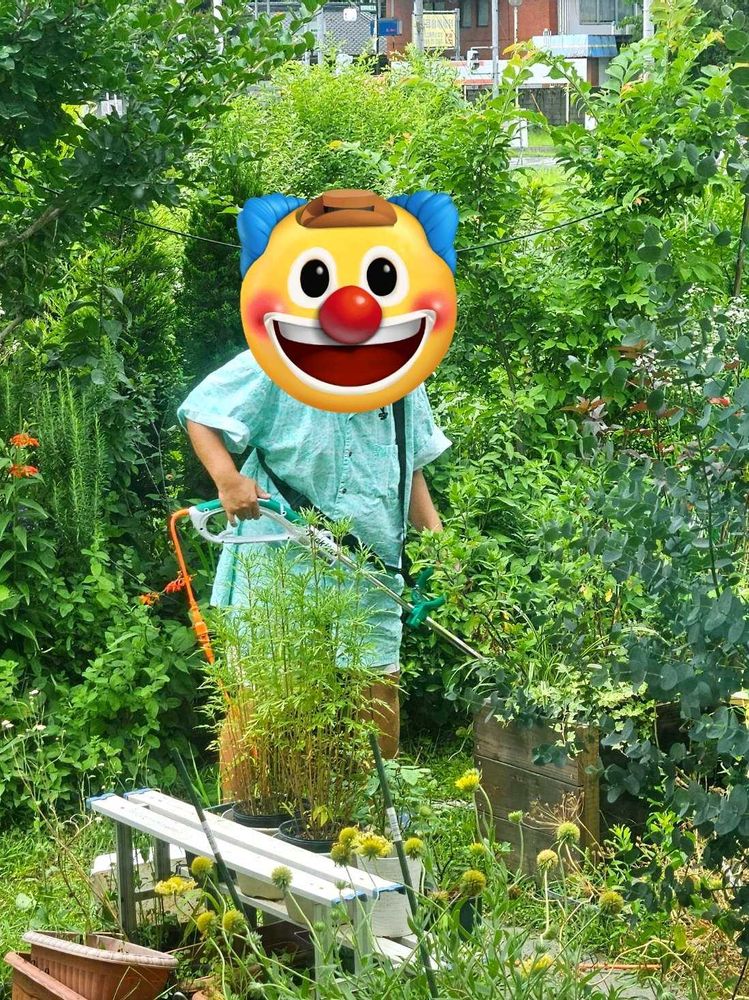 3台目の草払い機(草刈り健太郎くん/3年︎︎👍→RYOBI/1年💢→マキタ🆕)がしばらく前に届いていたので、明るいうちに組み立てて試運転兼ねて玄関周りを草刈りしてたら、母に写真撮られてました。ビール片手に草刈りしてるアメリカ人のおっさんかよw そして小指たってるw って自分ながら笑いました。