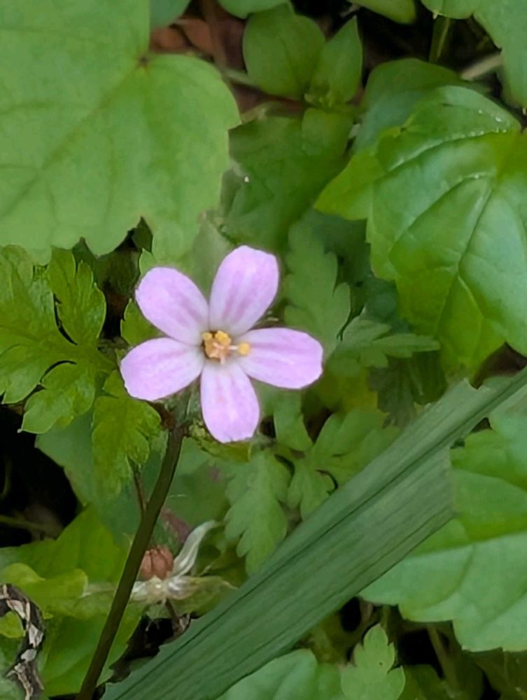 隣家の日陰に、ひっそりと咲いていました。花は1センチ弱。検索するとヒメフウロとでます。初めて聞く名前。可憐がピッタリ。もしかしたら違うかも。教えていただけるとうれしいです。