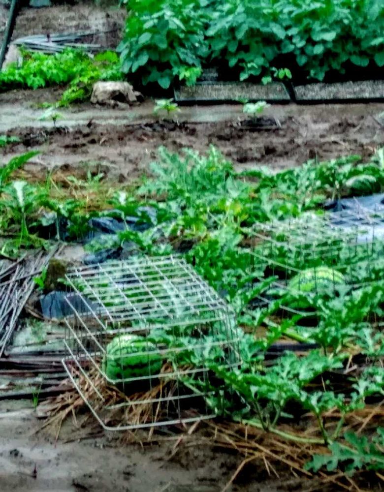 朝の散歩道で,西瓜に籠が,通り道の畑の西瓜にの投稿画像