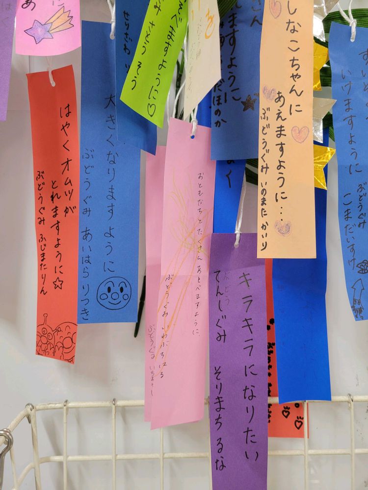 明日は七夕🎋 保育園の2歳児たちの願い事です、カワユイ💓