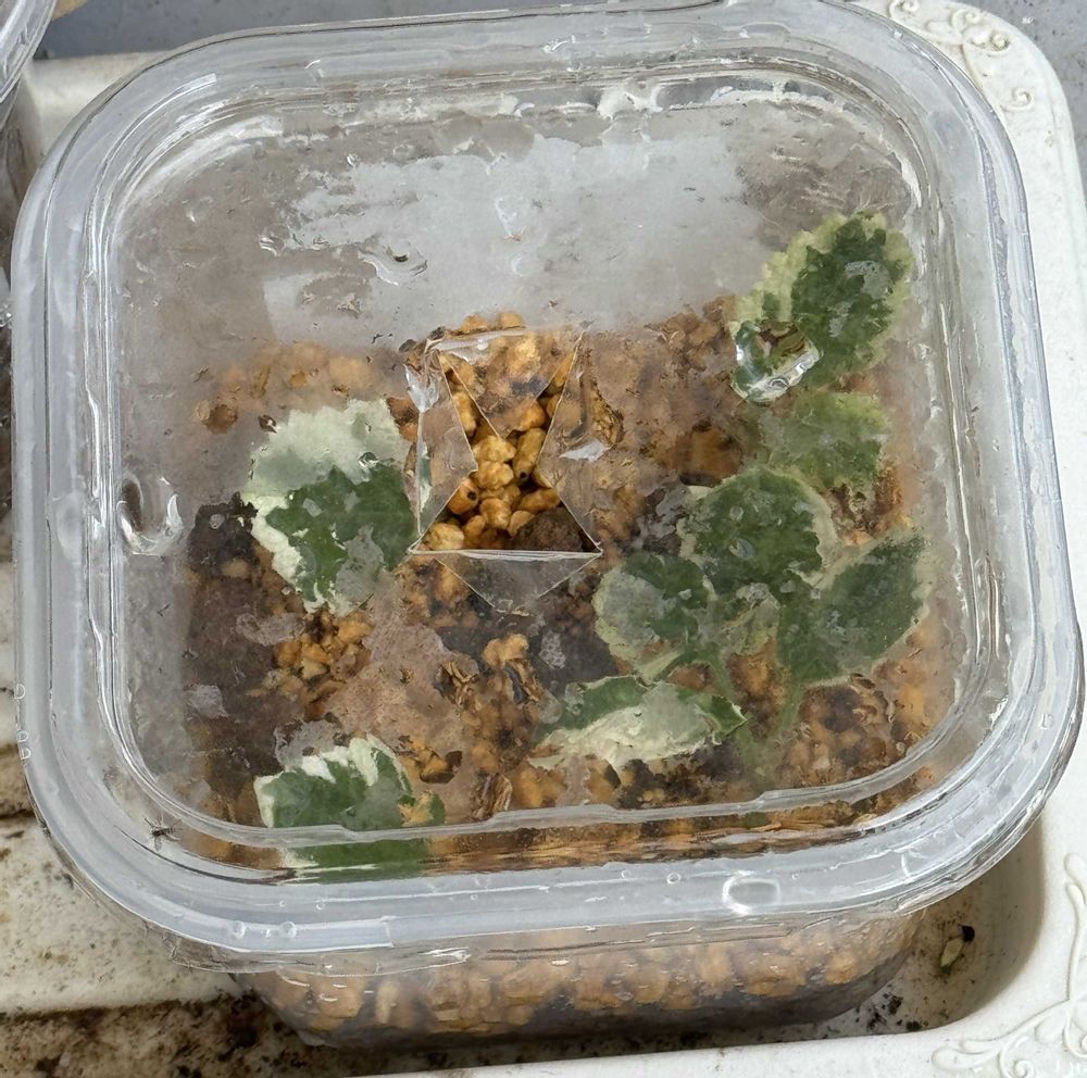 代わりに、アロマティカス(斑入り)を2本と葉っぱ2枚をテストに