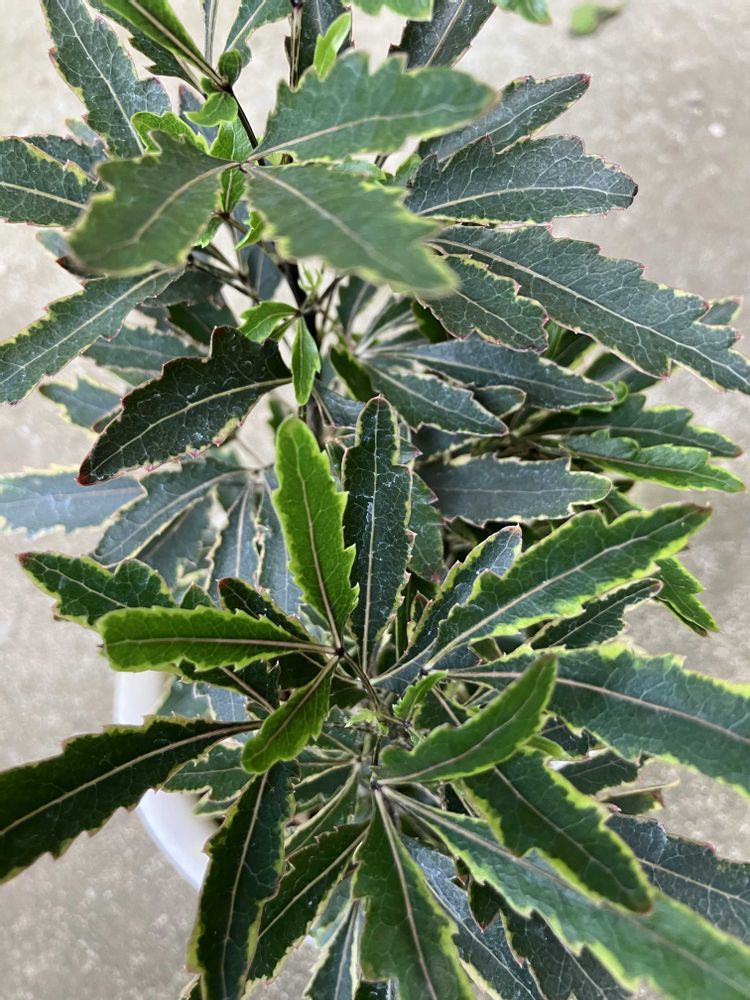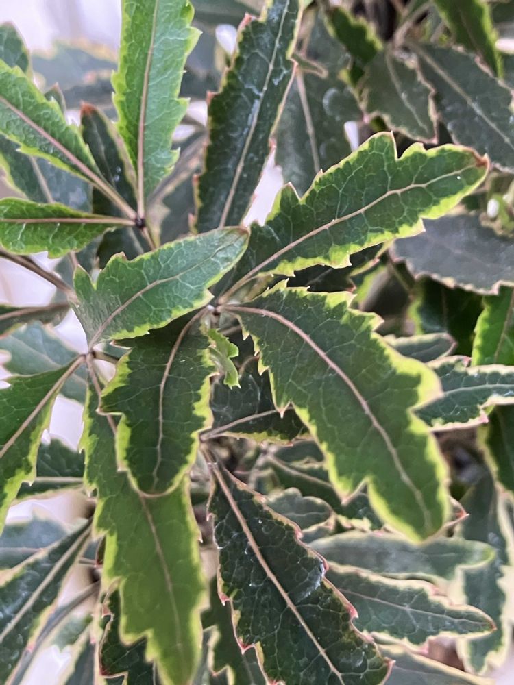 細長いギザギザの斑入り葉。