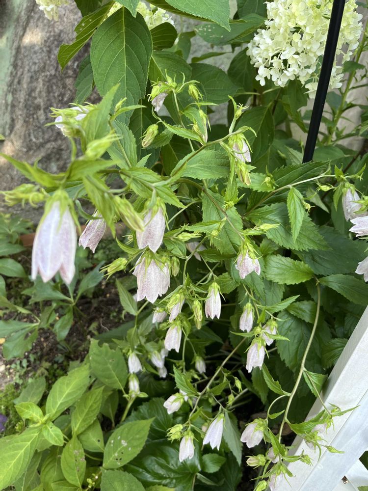 何か、うちのホタルブクロは、夏バテ気味で、萎れかかってます。半日陰なんですけど、一日中日が当たらない方がいいのかしら?可哀想な感じです😢