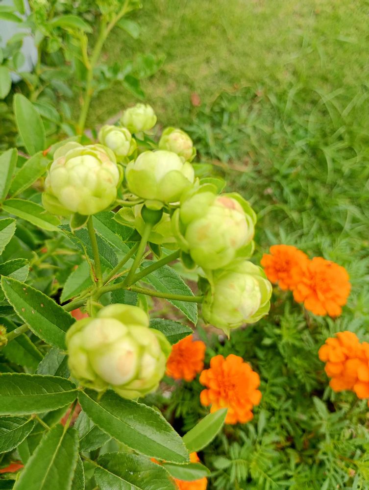 エクリールとマリーゴールド、寄せ植えみたいで可愛い🥰