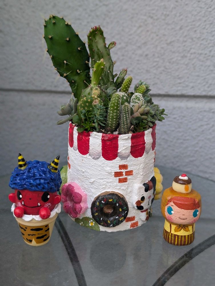 寄せ植えはあまり多肉さんに興味のなかった妹が猫のリメ缶に惹かれてお迎えしました🐱