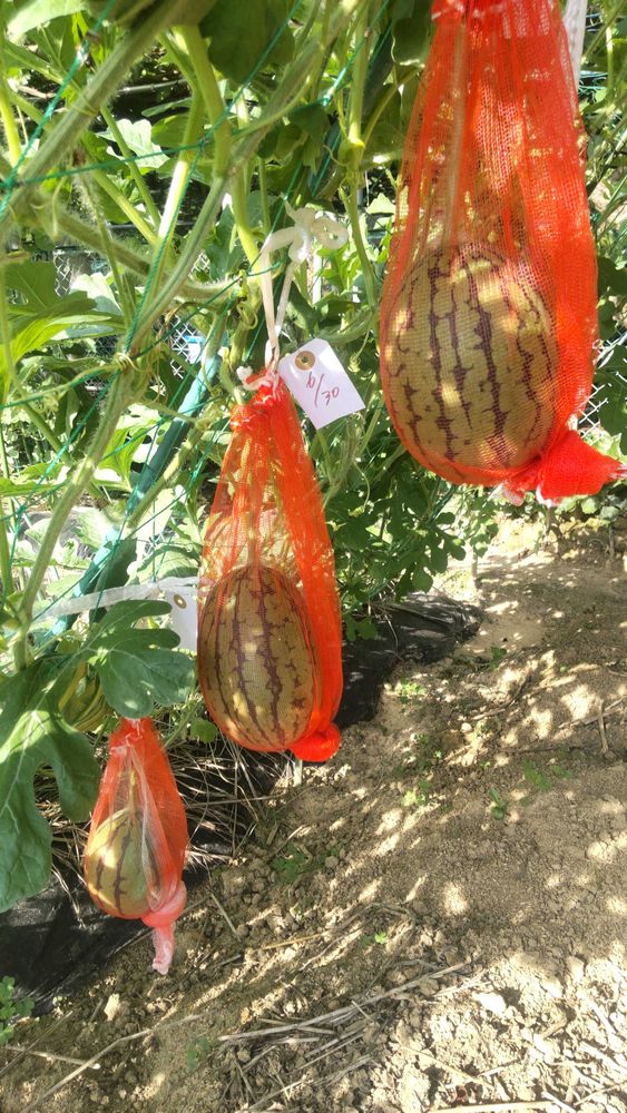 空中に栽培は 弦を踏まないし 着果が確認しやすく 管理が容易ですので 是非やってみてください🤗🍉