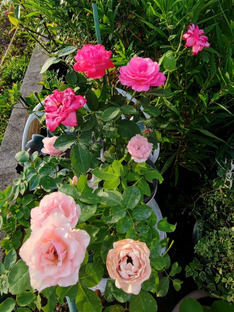 バラ ダフネと挿し木からのうらら、かな。頑張ってくれてます。ダフネは春はイマイチで、ようやく調子上がってきた感じ。