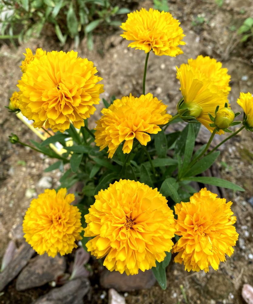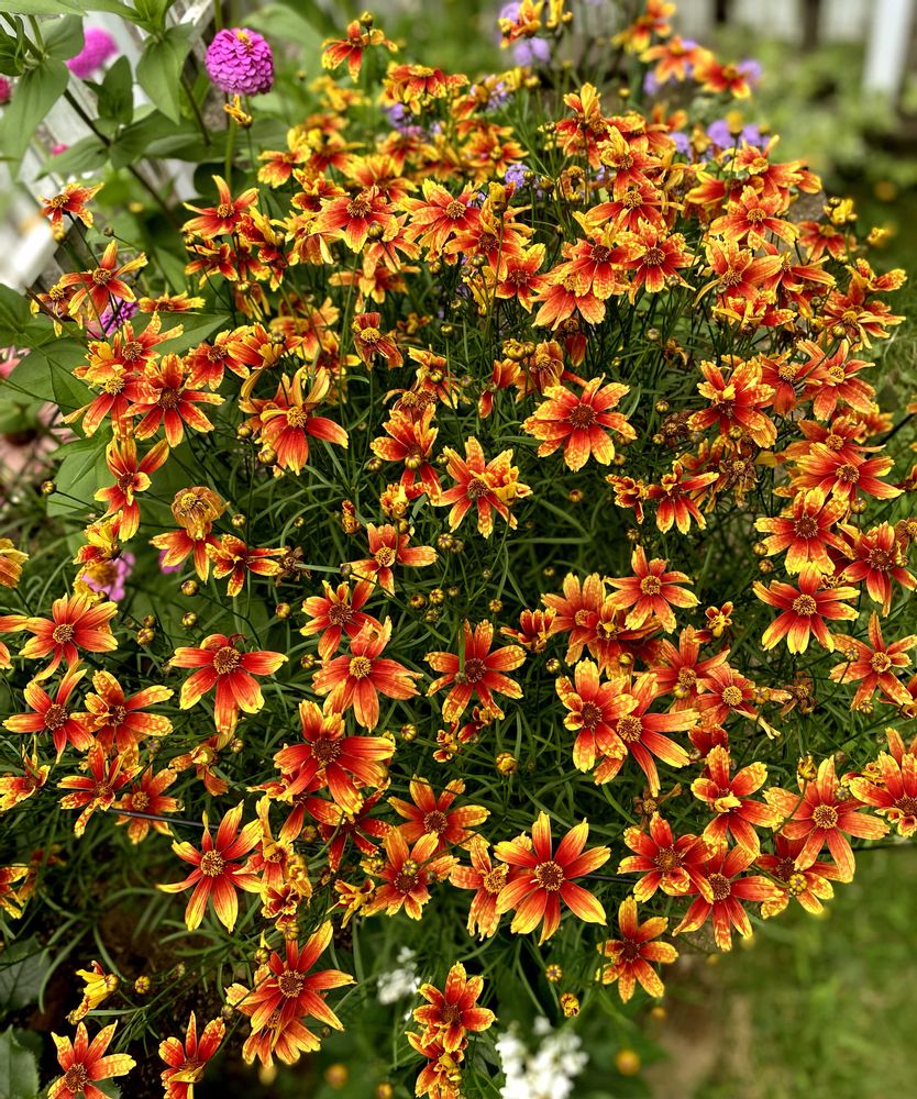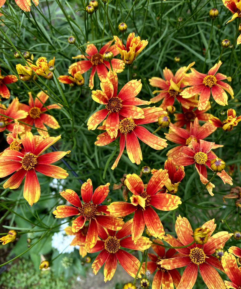 コレオプシス、3年目で爆発😆すんごい咲き方です。でかすぎるので、来年は場所を移さねば💦暑さにめちゃくちゃ強く、一日中ガンガン陽が当たる南でもへっちゃらです。3枚目はちっちゃい品種。この子は西側でも元気でかわいいです☺️