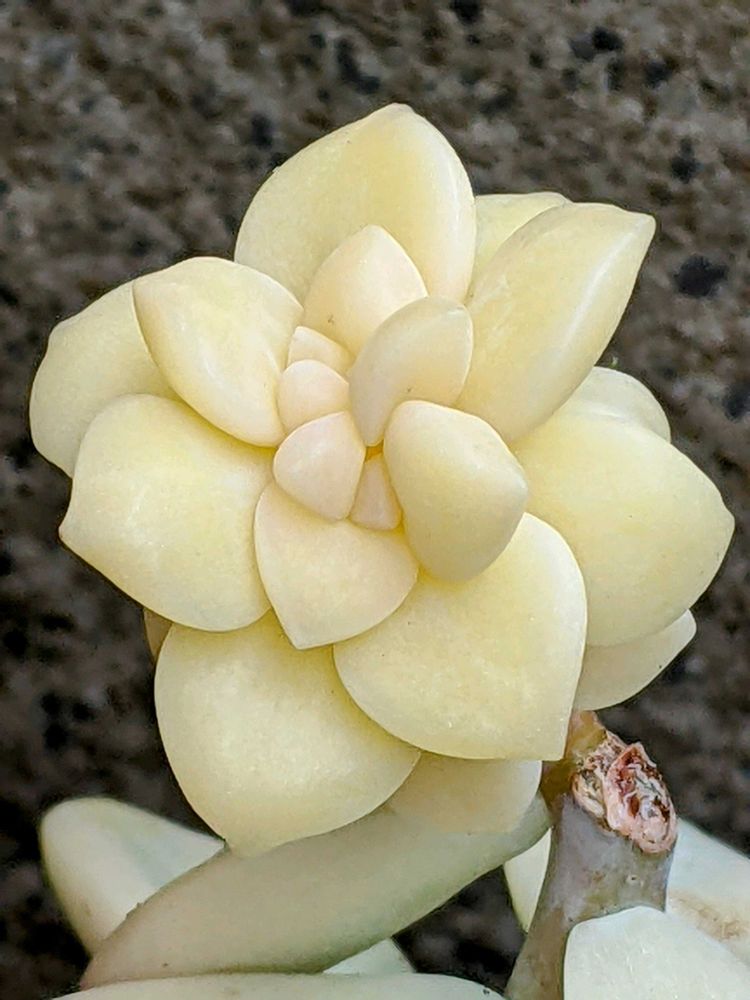 本当は淡いグリーンに斑入りなのに、カットして子吹きした子がピンクで、それがクリームになったの。