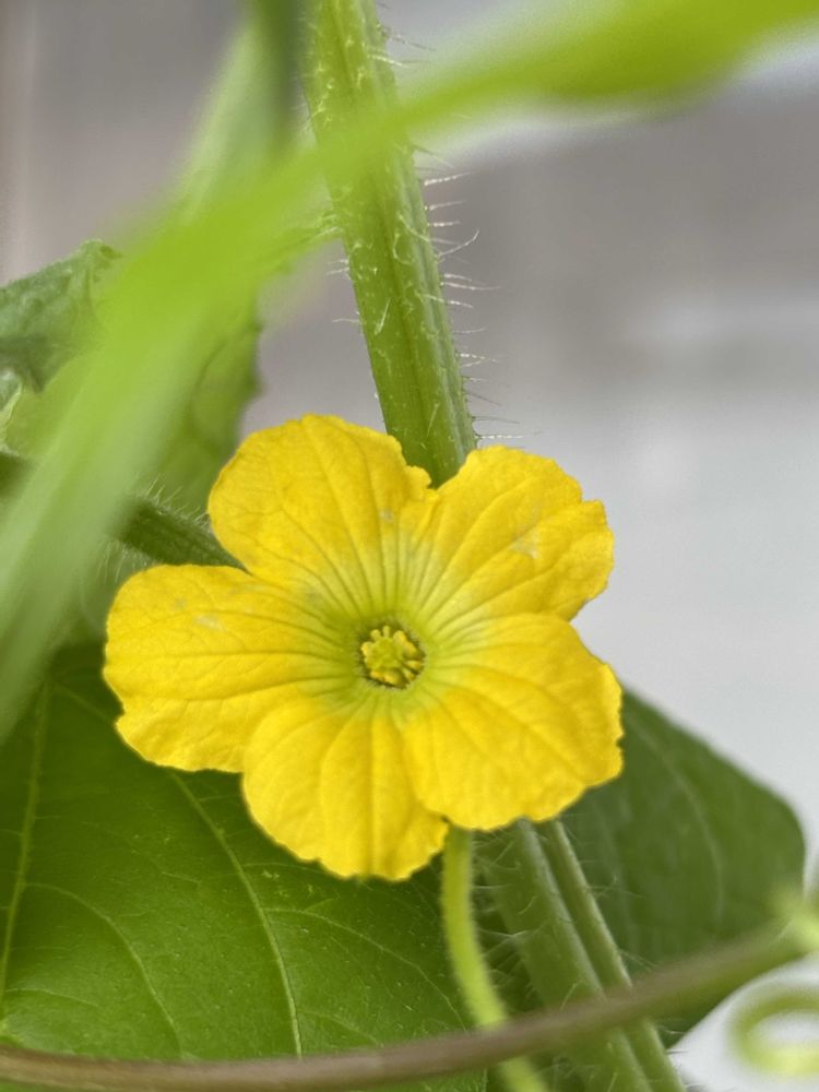 ① このお花を見たさに、食べた後の種をプランターにまいてみた😉