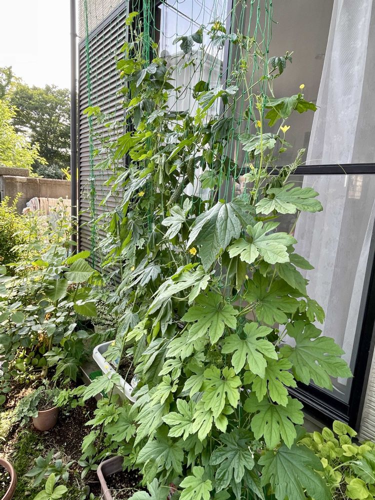 ゴーヤカーテン ゴーカになるといいですね🌿🌿🌿🥒←ゴーヤノツモリ