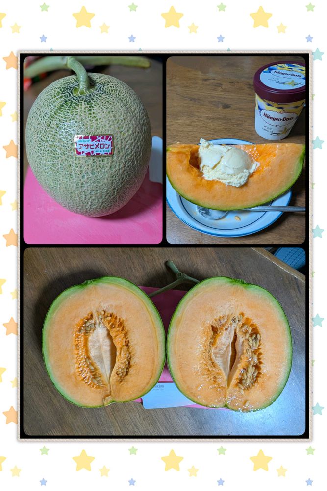 わ~花よりメロン🍈に👀💞🤭アイスのっけで🙆