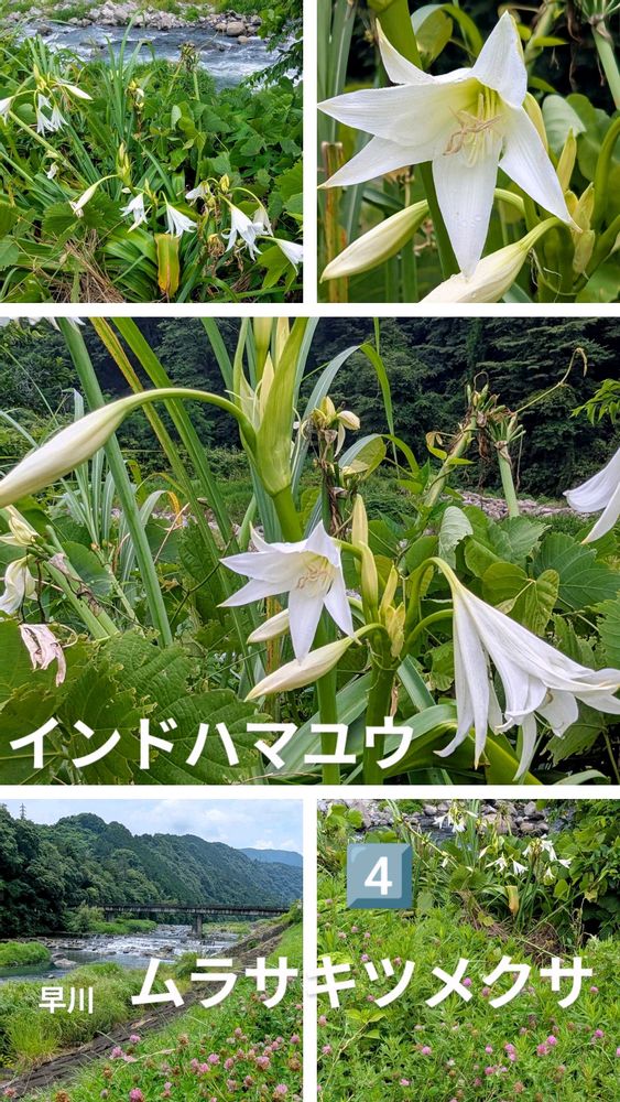 4)同じく早川沿いの散歩道でインドハマユウの花が咲いていました