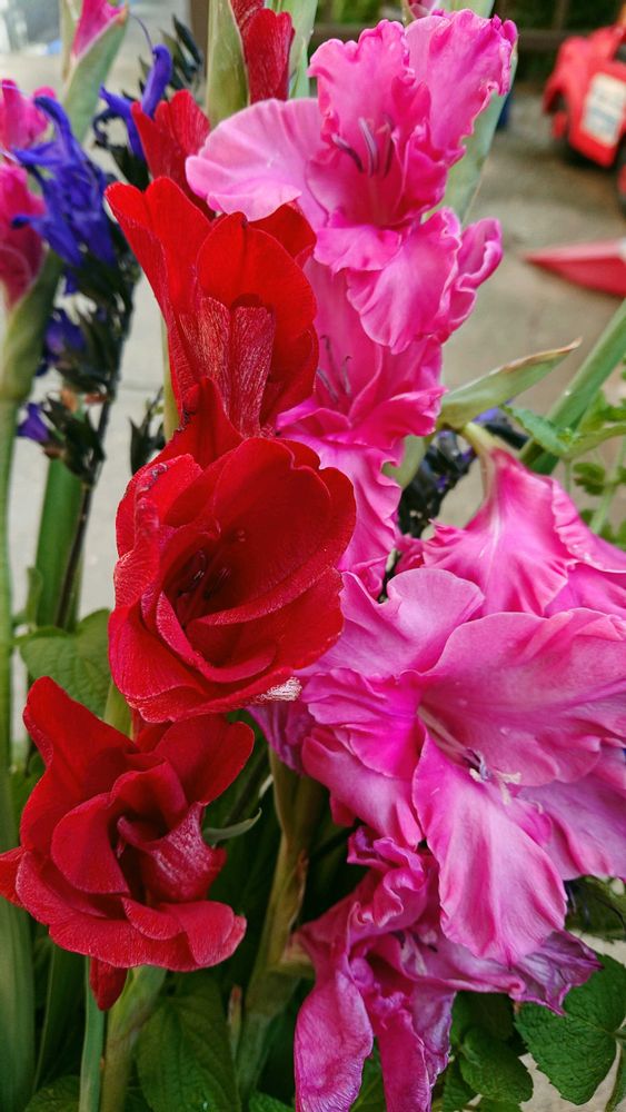 グラジオラス、赤もピンクもゴージャスで綺麗に咲いているね〜☺💕💕