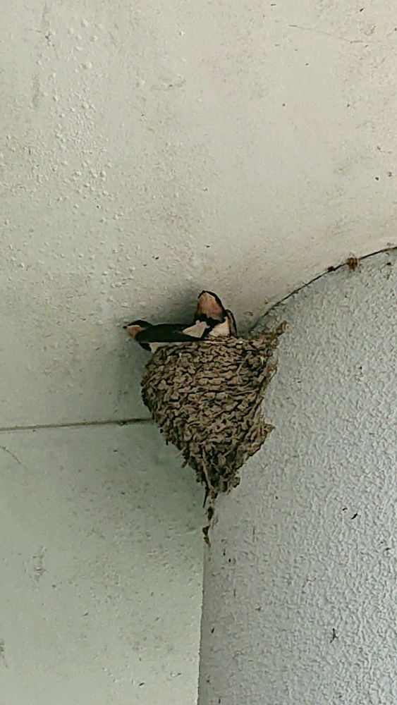 ツバメが飛んでる!と思ったら、ちょうど2羽のツバメちが巣の中にいましたが、📱💥したら驚かせたみたいで、飛んで行きました😅‼️