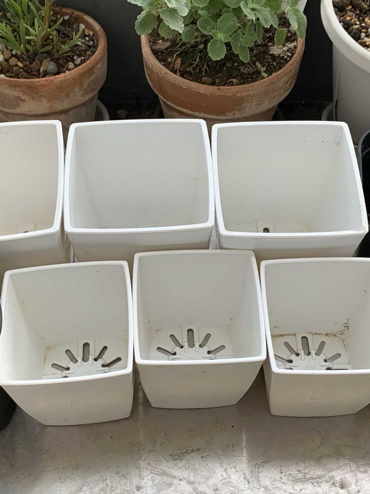 白いのがびっちりくっついていて、下段コーナーの鉢は壊滅的状況