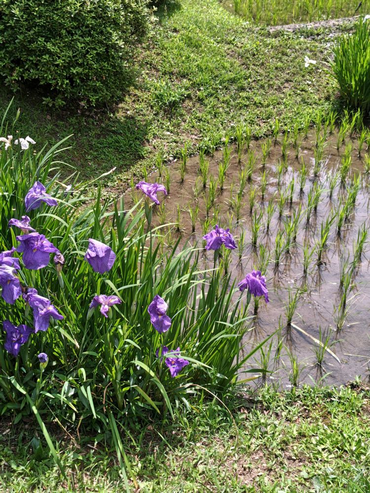 田んぼとしょうぶの風景はのどかでいいね!どこかなと思ったら市内のど真ん中だね😊