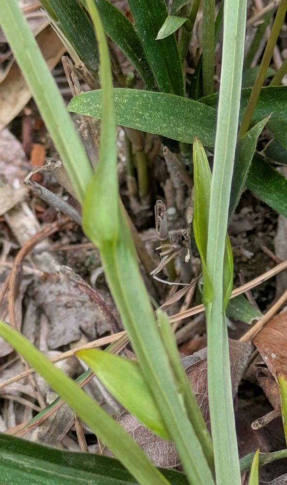 基部の葉は茎の三角にあわせて3方向に開き茎を抱いていて、上部にある葉は小さくなる🟩