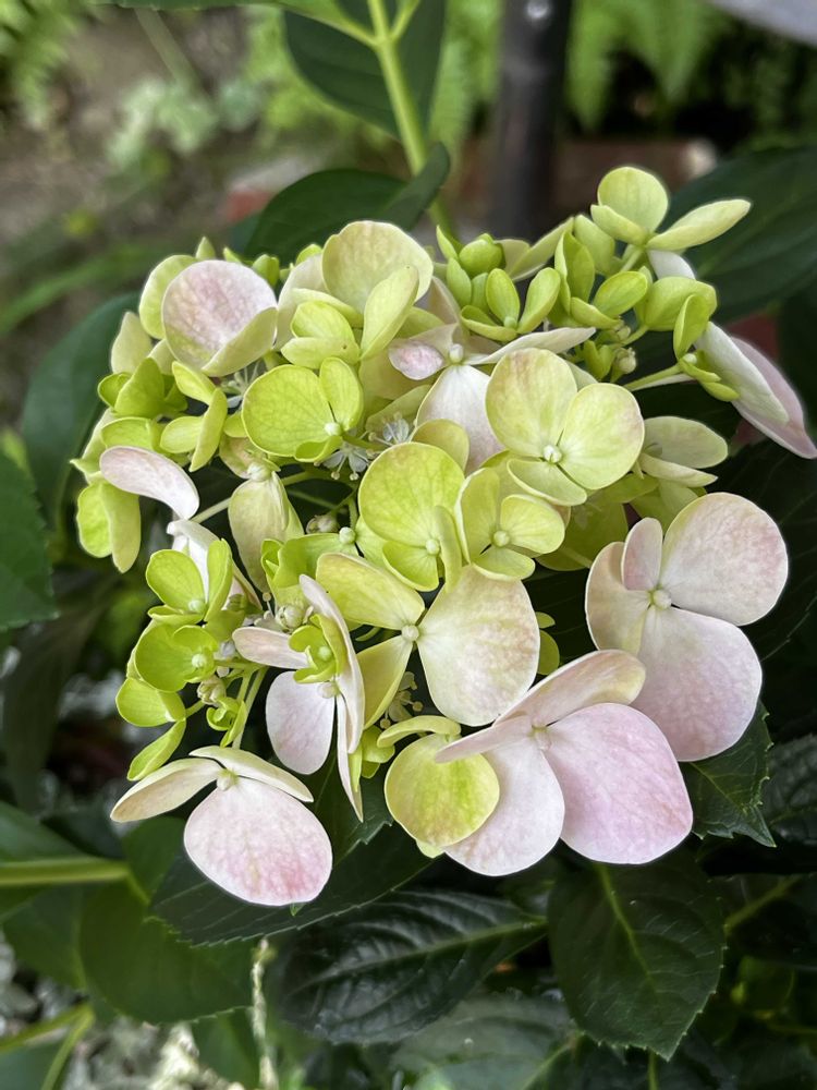 小さな苗だったのでお花は期待してなかったのですが、周りのアジサイはお花が終わりかけの今小さなお花をポツポツと咲かせ始めました