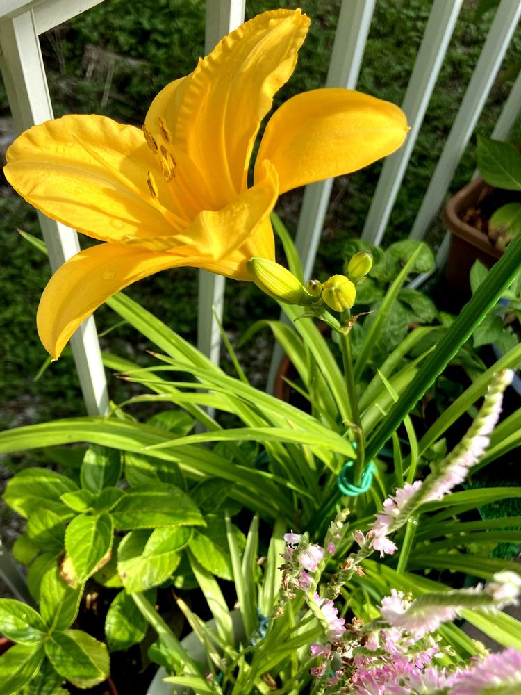 ヤッター🙌 3年程前に友達から分けてもらったニッコーキスゲさんがやっと開いた💛🥰 毎年葉っぱだけで、"山野草やから平地では無理なのかなぁ"と諦めかけてた子。昔、信州の山で大群の花を初めて観て"良いなぁ"と憧れてました。
