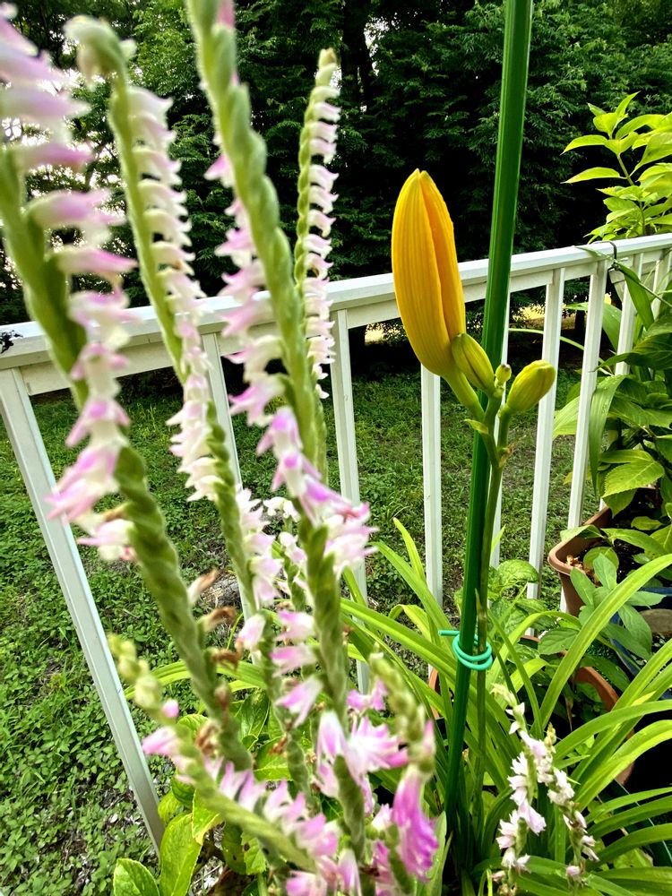 ④⑤昨日まで蕾やった。ネジバナさんとの山野草コラボです。ワクワクしながら開くのを待ってました💖