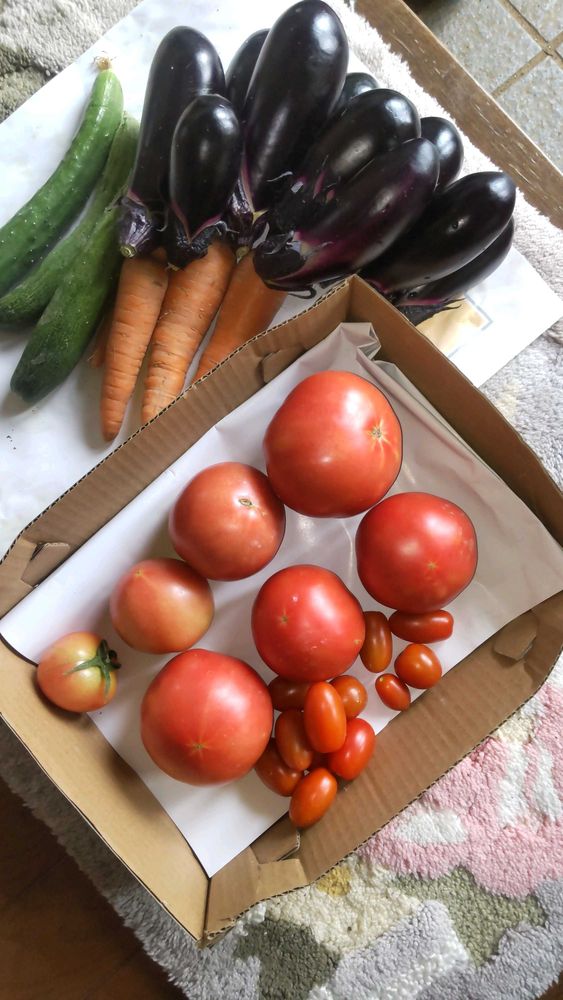 猛暑で午後は外に出られません🥵野菜今 は収穫時期 何処も同じだから 持っていく所が💦😅嬉しい悲鳴ですね〜😋