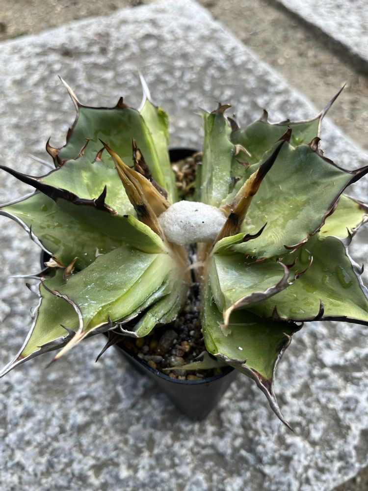 アガベハデスの中心が葉焼けで、腐ってきたので、縦割りを決断しました。また新しい子株の出現に、期待します😀