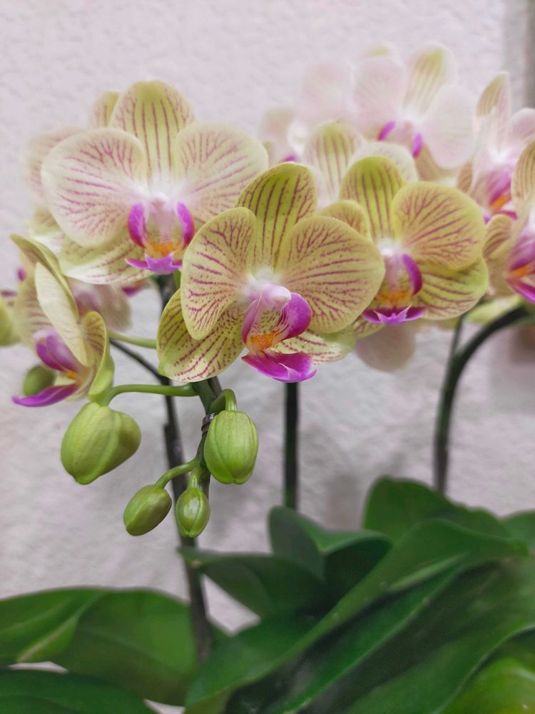 友人に頼まれて胡蝶蘭を買ってきました。イエロー系にピンクの筋が入って可愛いです💗