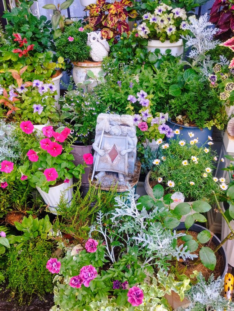 高低差をつけて沢山の鉢と小物を並べて楽しんでます🌿