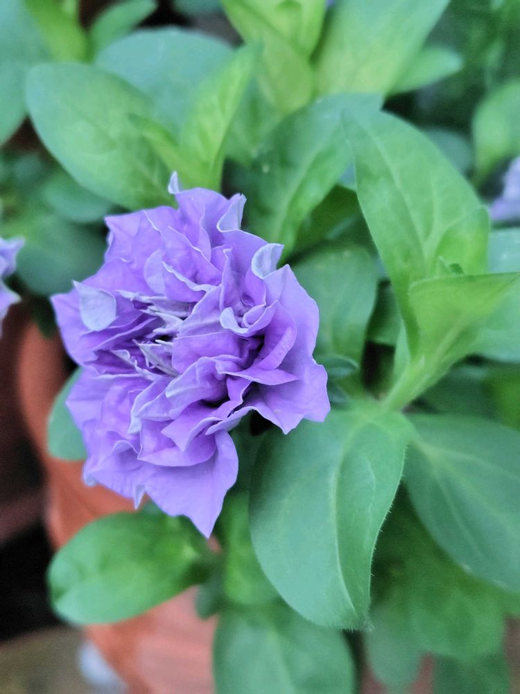 ④…バルコニーで咲き始めたペチュニア パニエ(ラベンダー)💟🌿