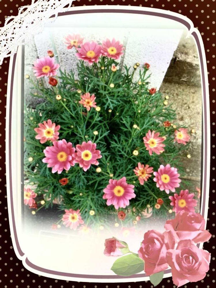 暑くて 最後のマーガレットです。最初のほうに咲いたものより小さな花になってしまいました。