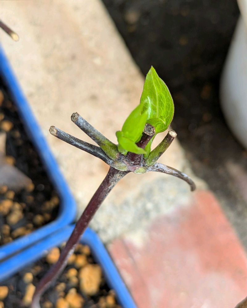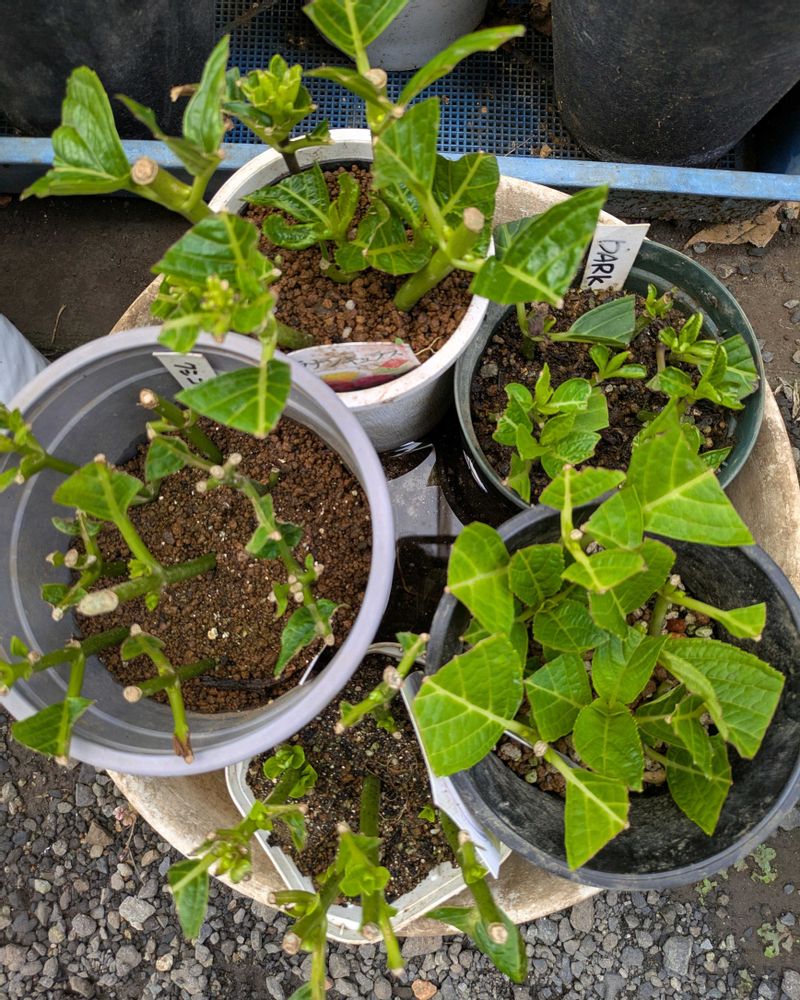 旦那様のたくさんの挿し木は、アジサイでしょうか〜(笑)
