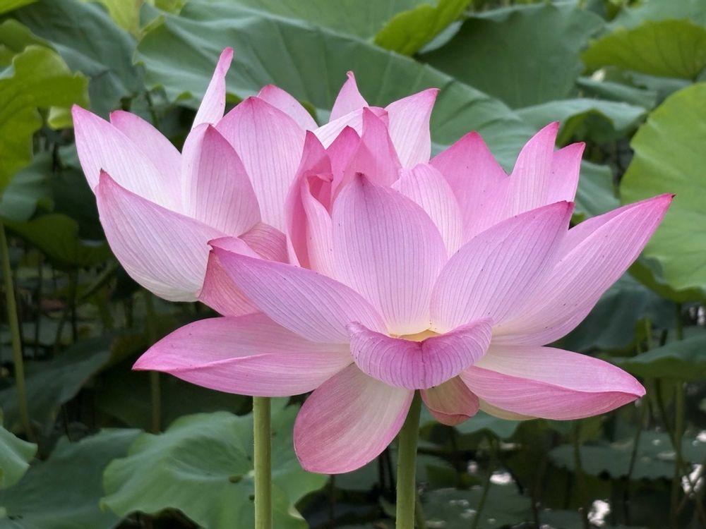 今朝の6時前ハス池は数人のカメラマンたち📷📱に囲まれていました