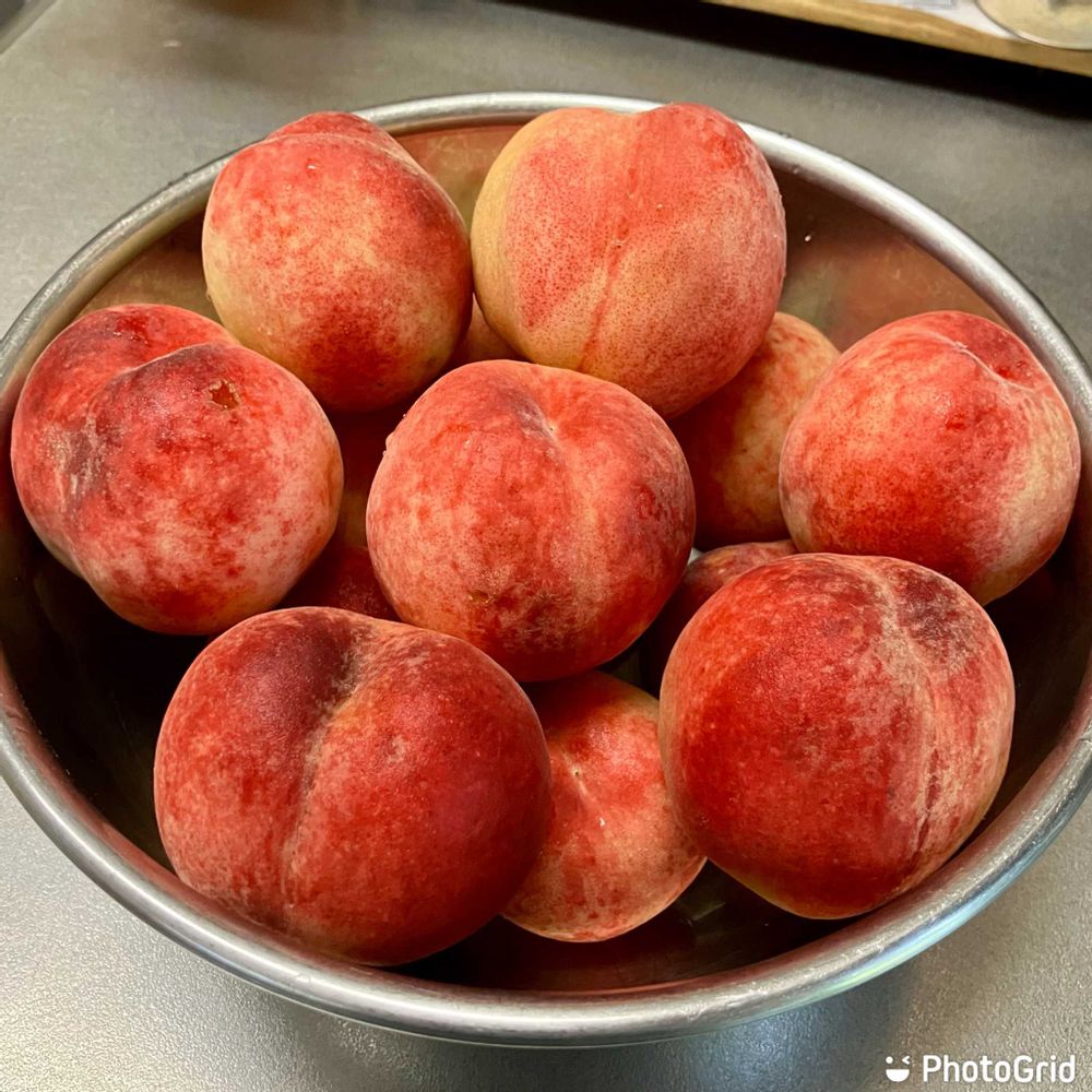 今朝の果樹園の恵みは、初物の白鳳桃🍑✨。