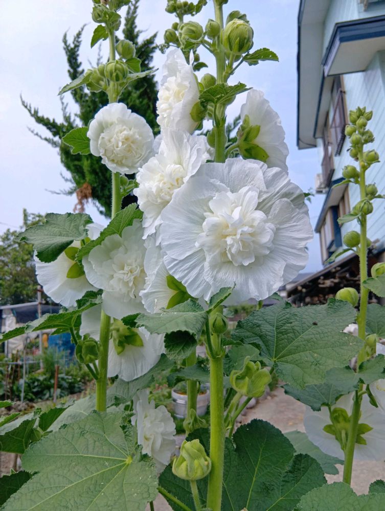 タチアオイを八重咲きがあまりにも美しいので思わずコメント失礼します😍