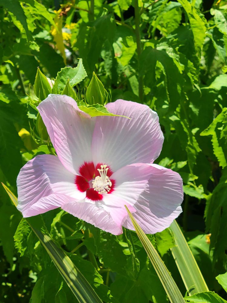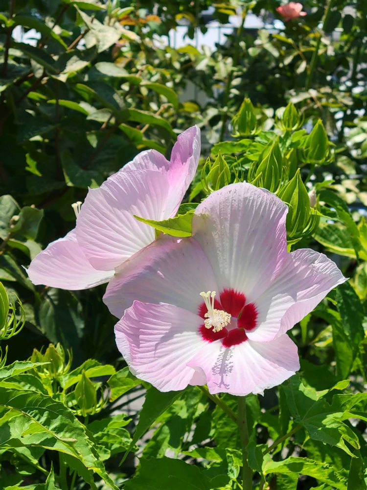 アメリカフヨウが大きな花びらをいっぱいに広げて可憐に咲いていました。