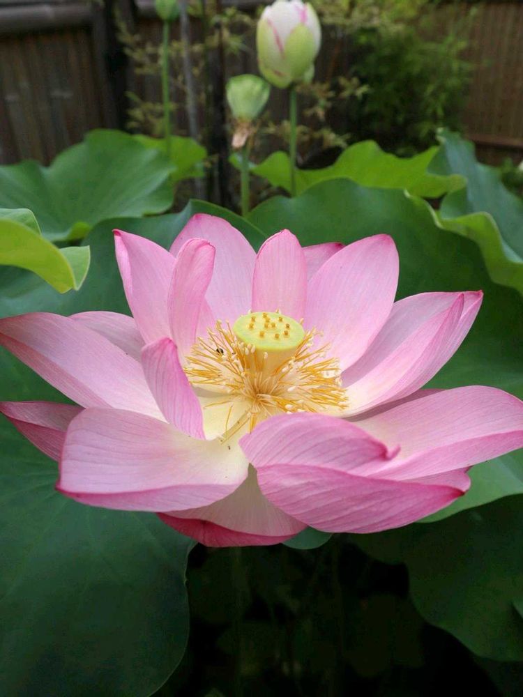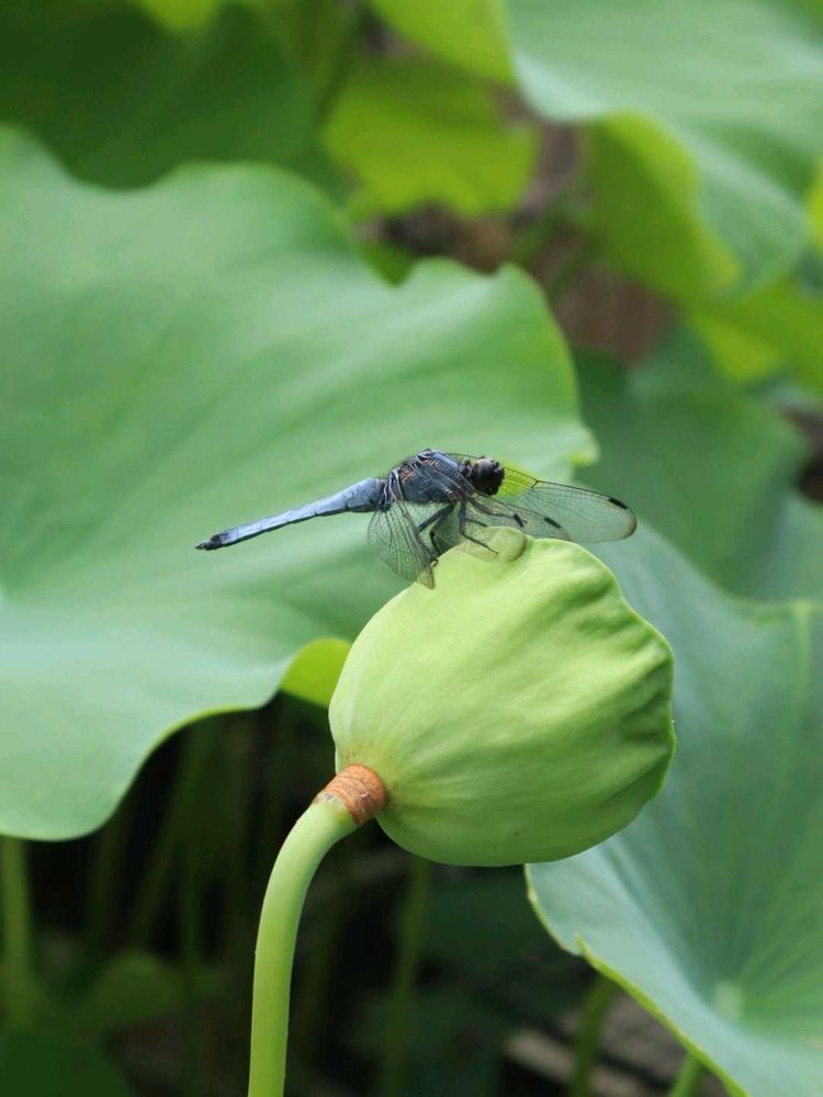 ②「一天四海」2番花来ました♪ ③「碧台蓮」2番花来ました!明日は「一天四海」とツーショットですが立ち葉の下で咲いてますねコレ(笑) ④「大賀ハス」ここまで順調!花芽はこれのみ!あと少しです頑張って咲いて欲しい💦 ⑤今シーズンずっとうちで飛んでるシオカラさん♪先日メスとラブラブでした(笑)