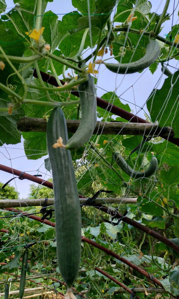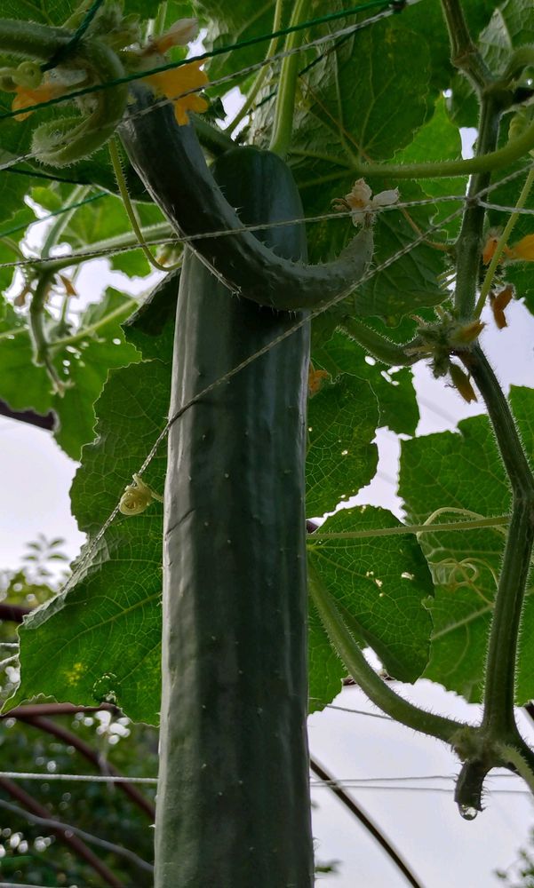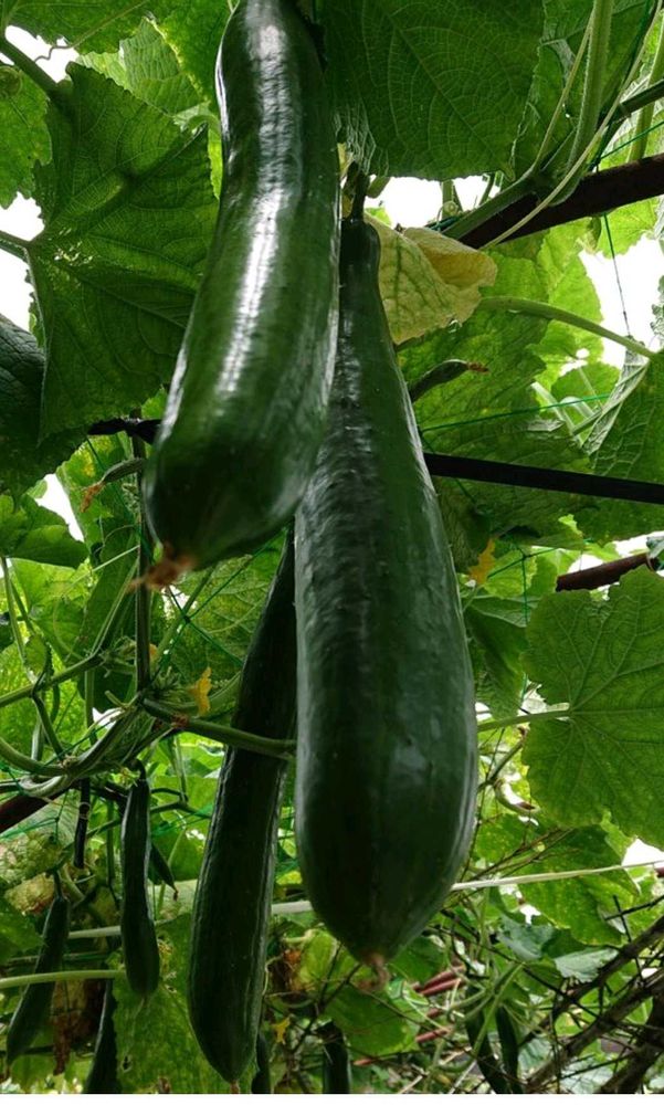 主人と実家の畑で育てているキューリさん😊
