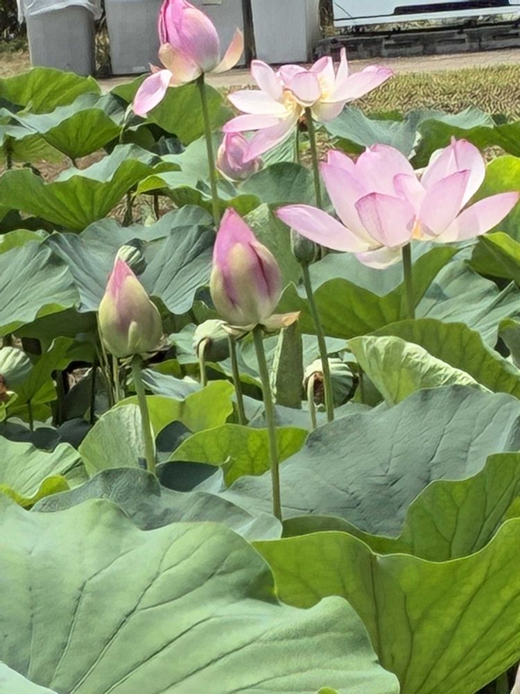車中、「確か、夏頃、ハス咲いてたよ